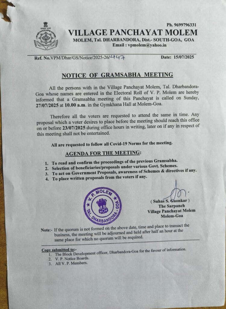 Notice of gram sabha meeting 27/07/2025