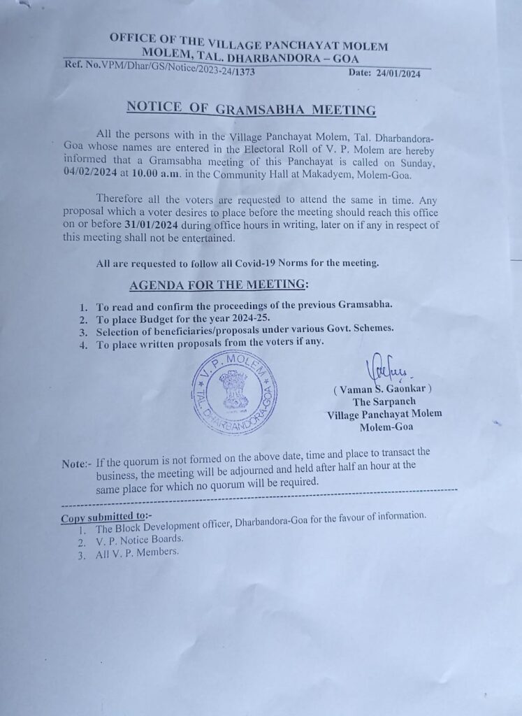 Notice of Gramsabha meeting- 04th Feb 2024