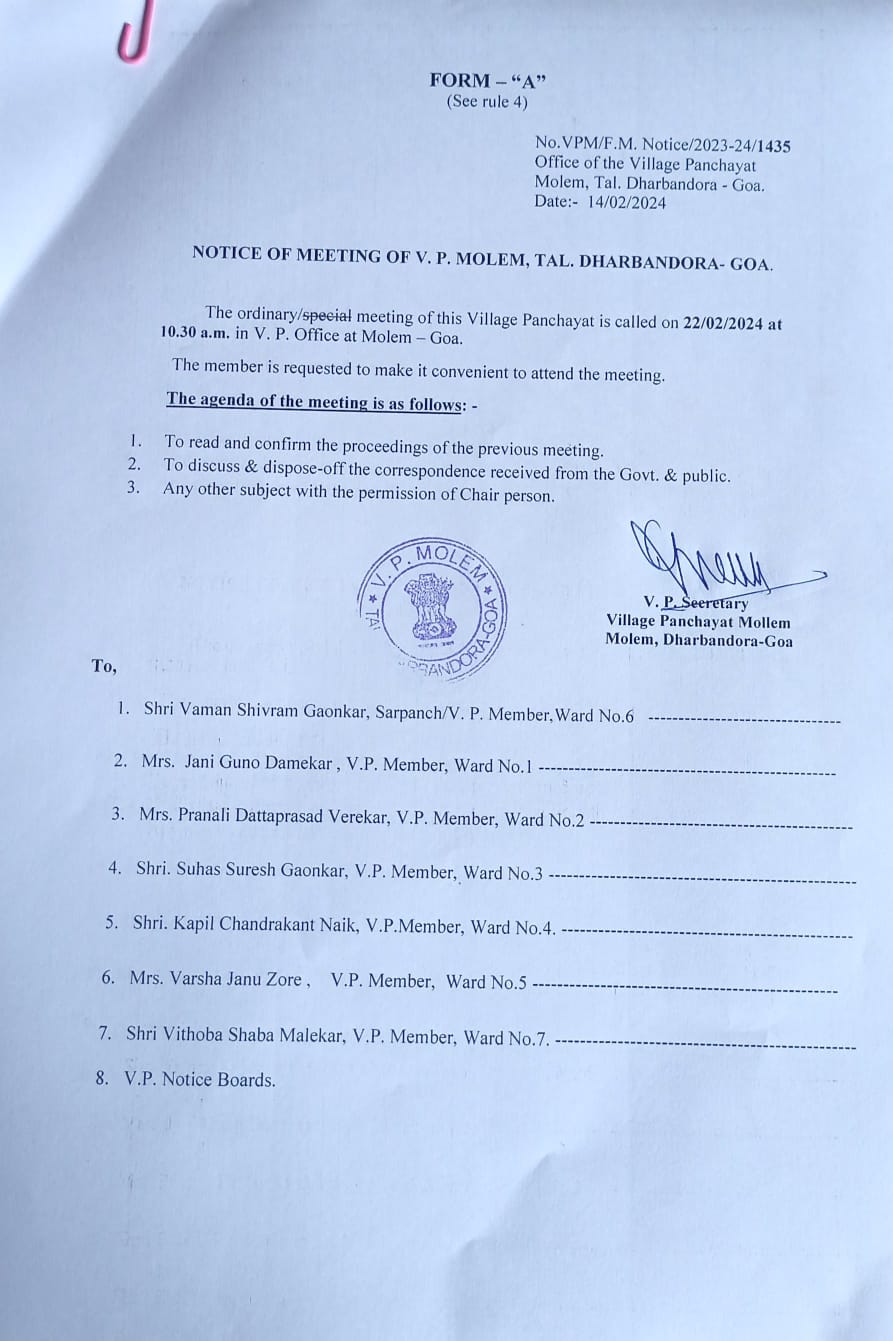 Notice of meeting 22nd Feb 2024