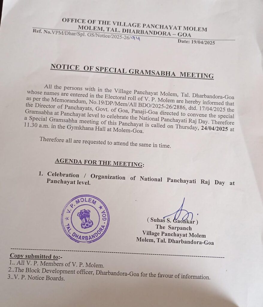 Notice of special gram sabha meeting 24/04/2025