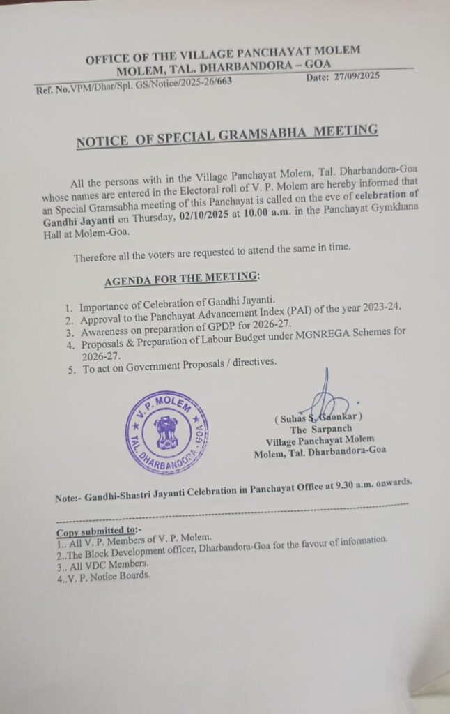 Notice of Special GramSabha Meeting 02/10/2025