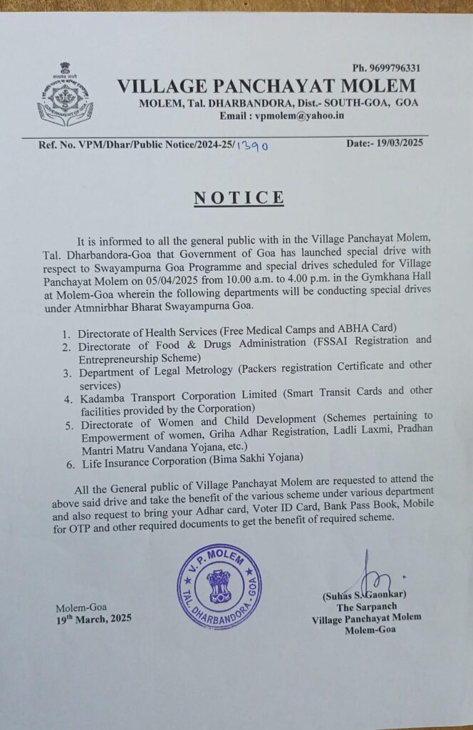 Notice- Swayampurna Goa Programme